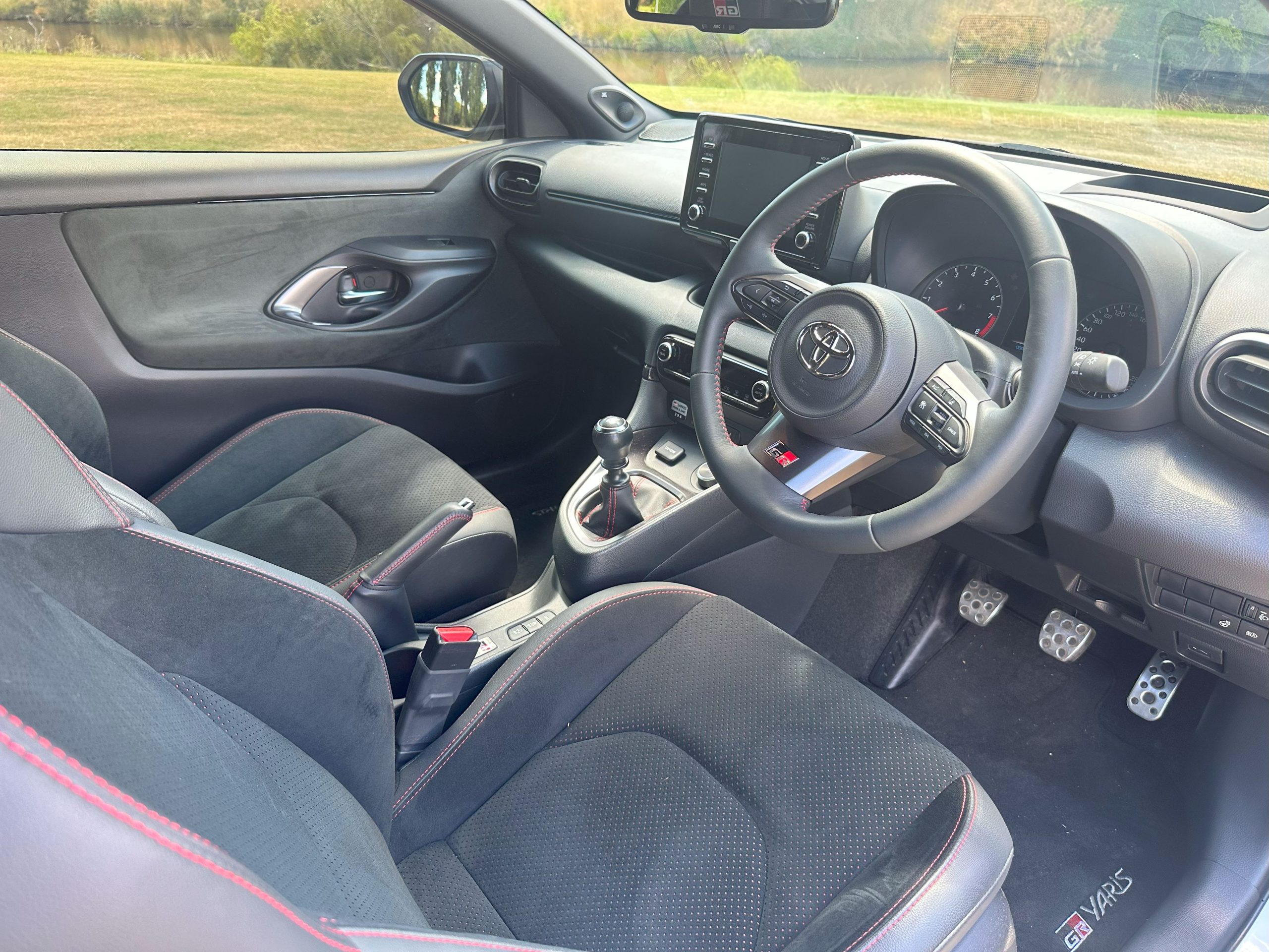 • GR sports front seats with red stitching and perforated Ultrasuede®1 inserts